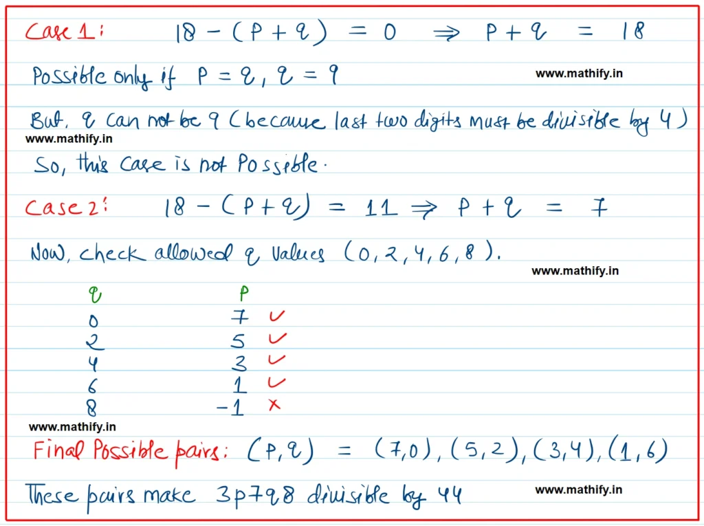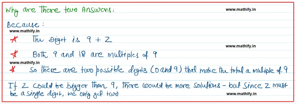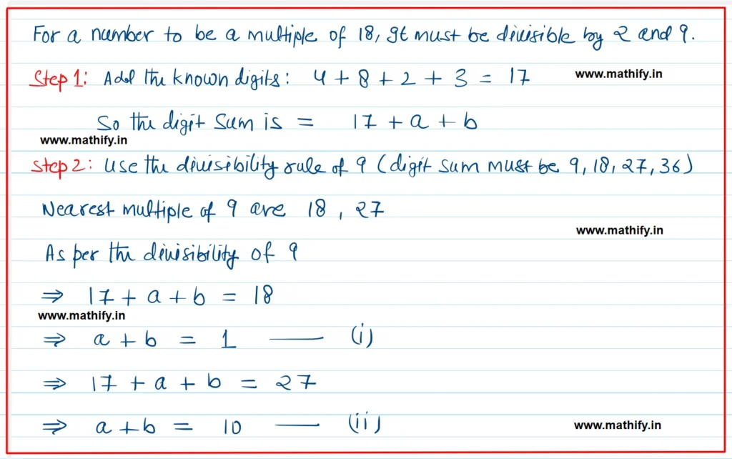 Note: We did not take total as 36, because a + b can not be more than 18 to make whole digits divisible by 9. If we take 36 total of a + b comes to 19 that is more than 18.