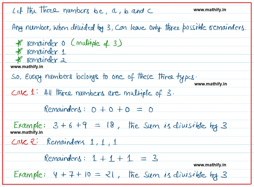 • This shows the sum is always a multiple of 3.