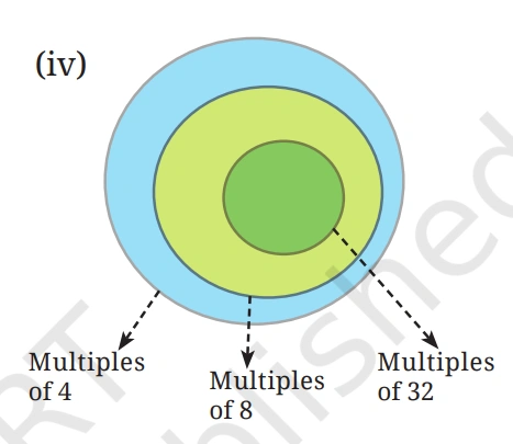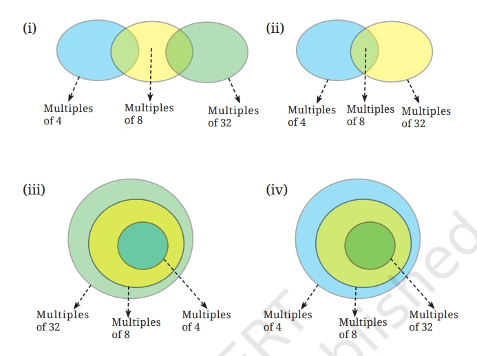 The Venn diagram captures the relationship between the multiples of 4, 8, and 32: