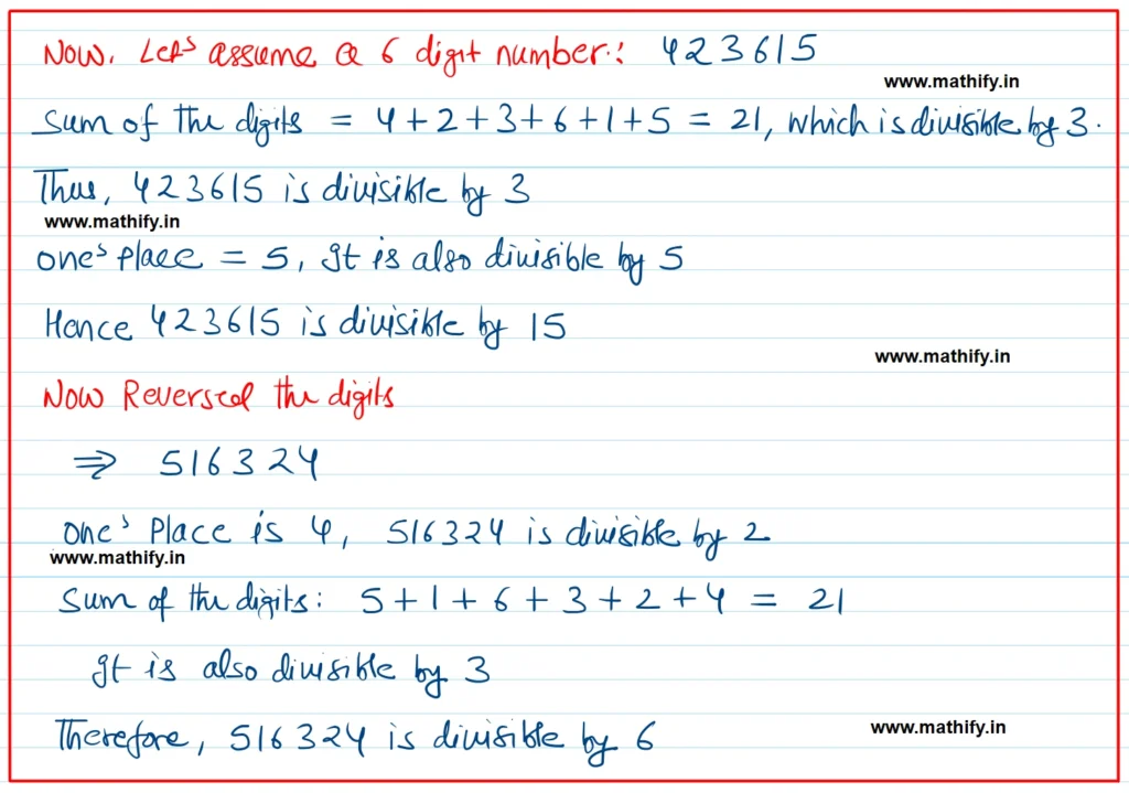 • Their sum = 6, which is divisible by 6.