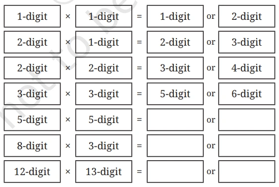 Q. Observe the number of digits in the two numbers being multiplied and their product in each case. Is there any connection between the numbers being multiplied and the number of digits in their product?