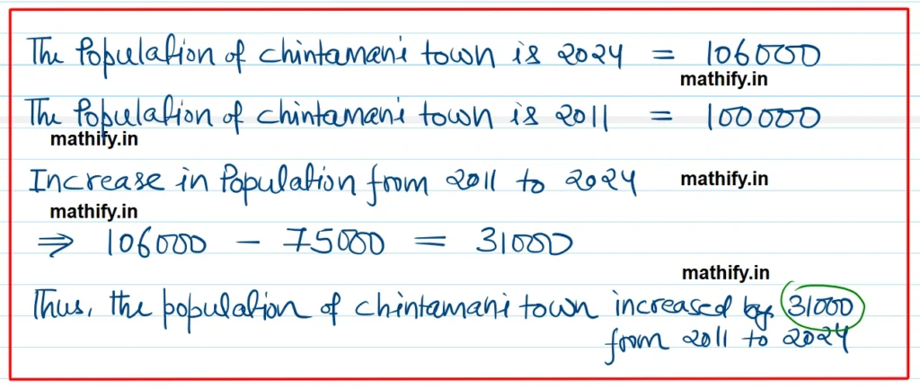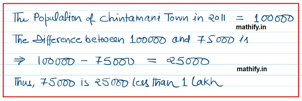 Q. 1. According to the 2022 Census, the population of the town of Chintamani was about 75,000. How much less than one lakh is 75,000?