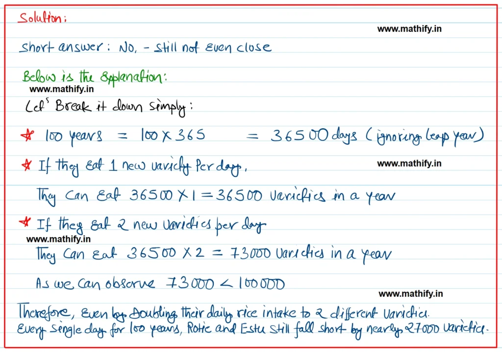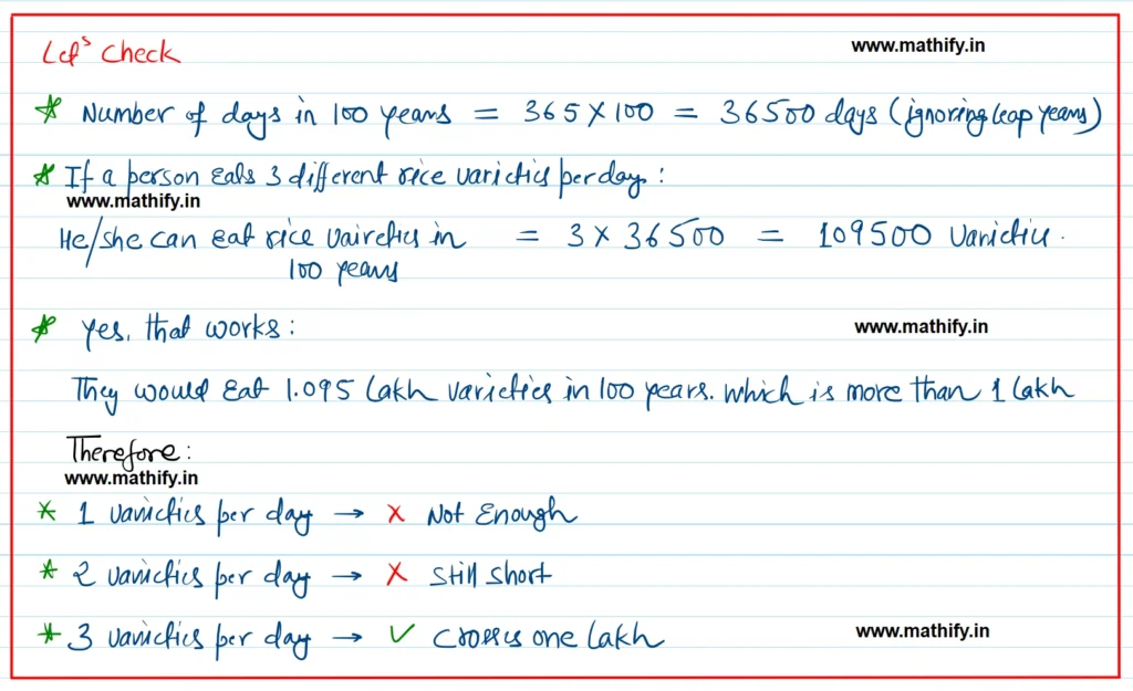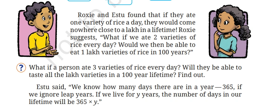 Q. 4 What if a person ate 3 varieties of rice every day? Will they be able to taste all the lakh varieties in a 100 year lifetime? Find out.