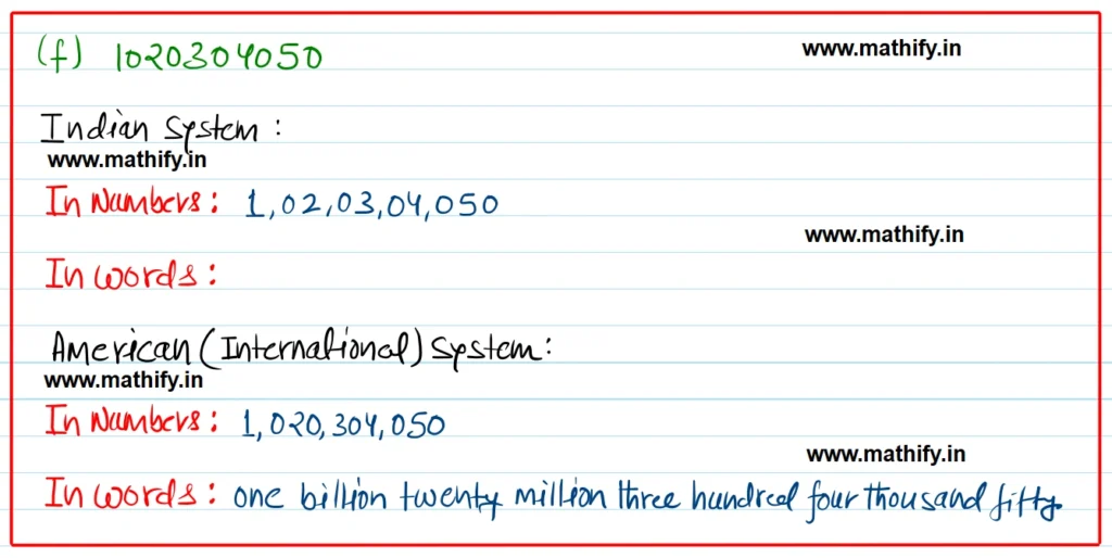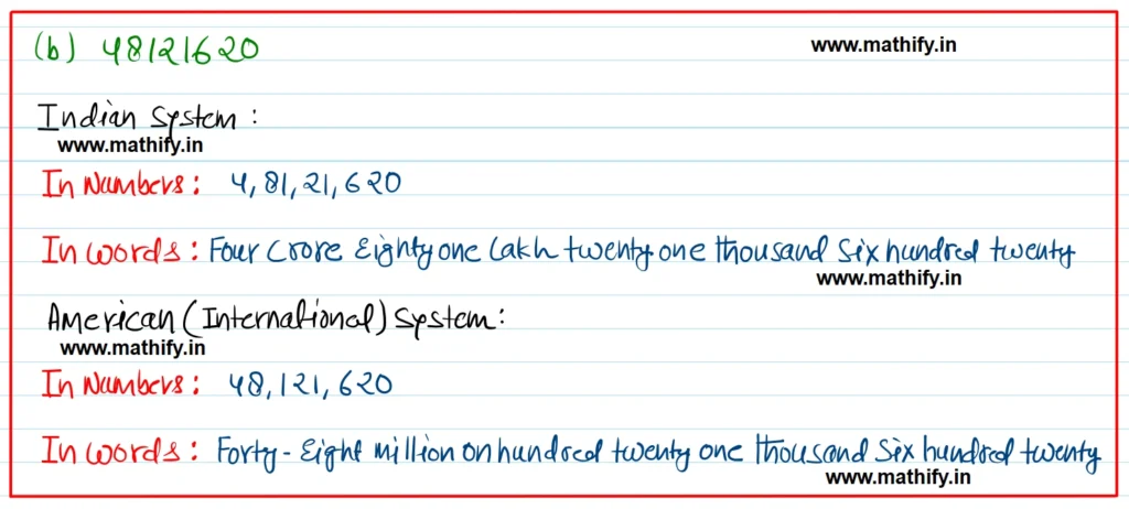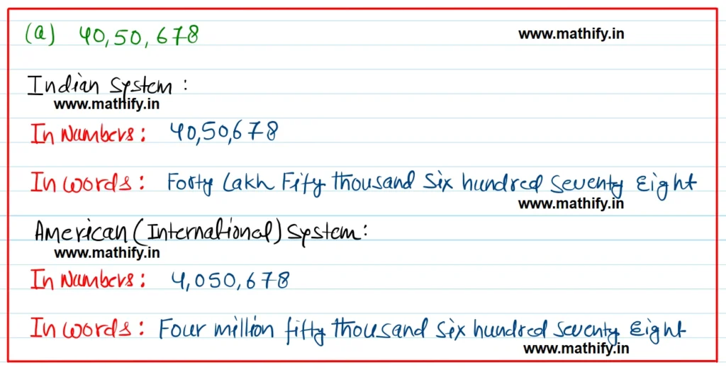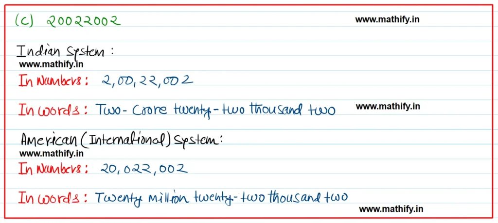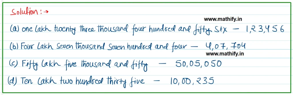 Q. Write the corresponding number in the Indian place value system for each of the following: