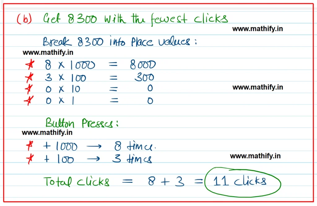 Q. 1. The Thoughtful Thousands only has a +1000 button. How many times should it be pressed to show: