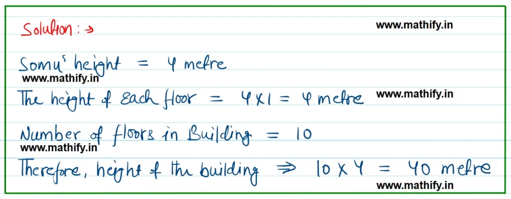 Q. 1. Loot at the picture on the right. Somu is 1 metre tall. If each floor is about four times his height, what is the approximate height of the building?