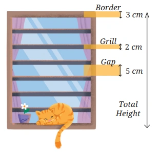 (c) Find the total height of the window by writing an expression describing the relationship among the measurements shown in the picture.