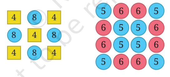 Question 4: Find out the sum of the numbers given in each picture below in at least two different ways. Describe how you solved it through expressions.