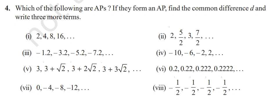 NCERT Solutions For Class 10 Maths Chapter 5 Arithmetic Progressions Exercise 5.1 – 2025-26