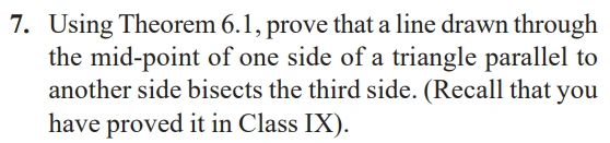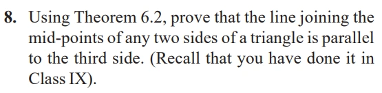 The line joining midpoints of two sides of a triangle is parallel to the third side.