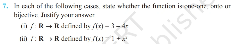 Learn to identify whether a function is one-one (injective), onto (surjective), or bijective (both) through problem-solving.