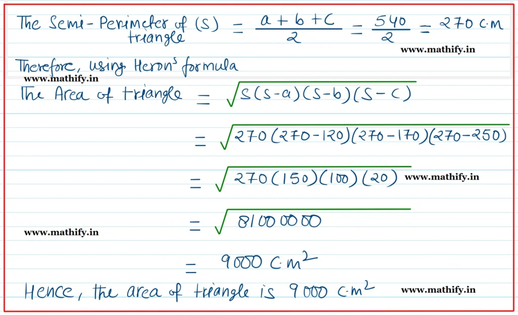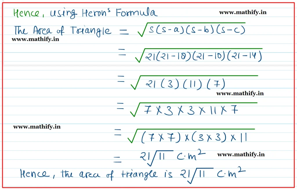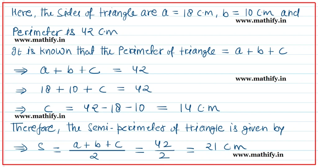 The best way to master this concept is by practising the numerical problems in Exercise 10.1, using Mathify.in’s free PDF study material. Each solution is presented with detailed steps and clear explanations to help you confidently apply Heron’s Formula in a variety of triangle-related problems.